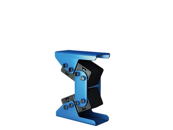 说明:扭力弹簧,橡胶做为弹性元件;多自由度隔振;(3.0〜6.3>Hz固有频率;垂向刚度较低,较适合垂向承载;杠杆+扭转工作方式降低刚度。